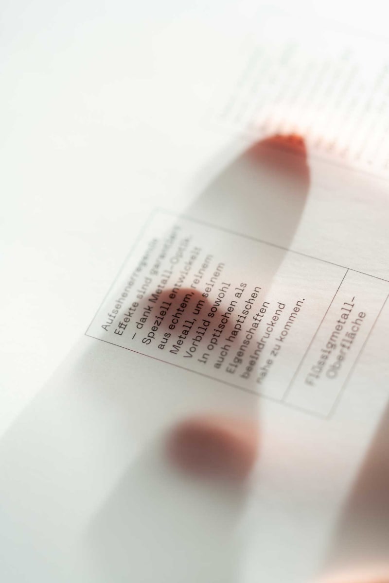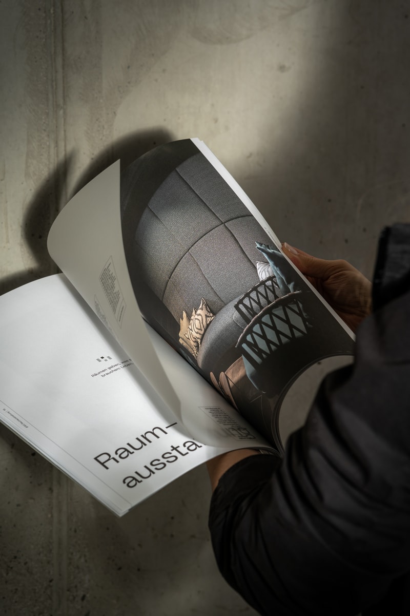 images/Projekte/Huttl%20Lookbook/Huettl%20Lookbook%20Aberjung%20Branding%2020240220-DSC02346.png#joomlaImage://local-images/Projekte/Huttl Lookbook/Huettl Lookbook Aberjung Branding 20240220-DSC02346.png?width=2000&height=1334Das Lookbook für Hüttl vereint ein taktiles Erlebnis mit visueller Ästhetik. Gedruckt auf feinem Munken und Colorplan, ist es mehr als nur ein Katalog; es ist eine Hommage an die Handwerkskunst und an das Material selbst. Diese Hommage wird durch den bewussten Einsatz von Licht und Schatten sowie die sorgfältige Auswahl der Materialien zum Leben erweckt - ganz so wie die Räume von Hüttl.