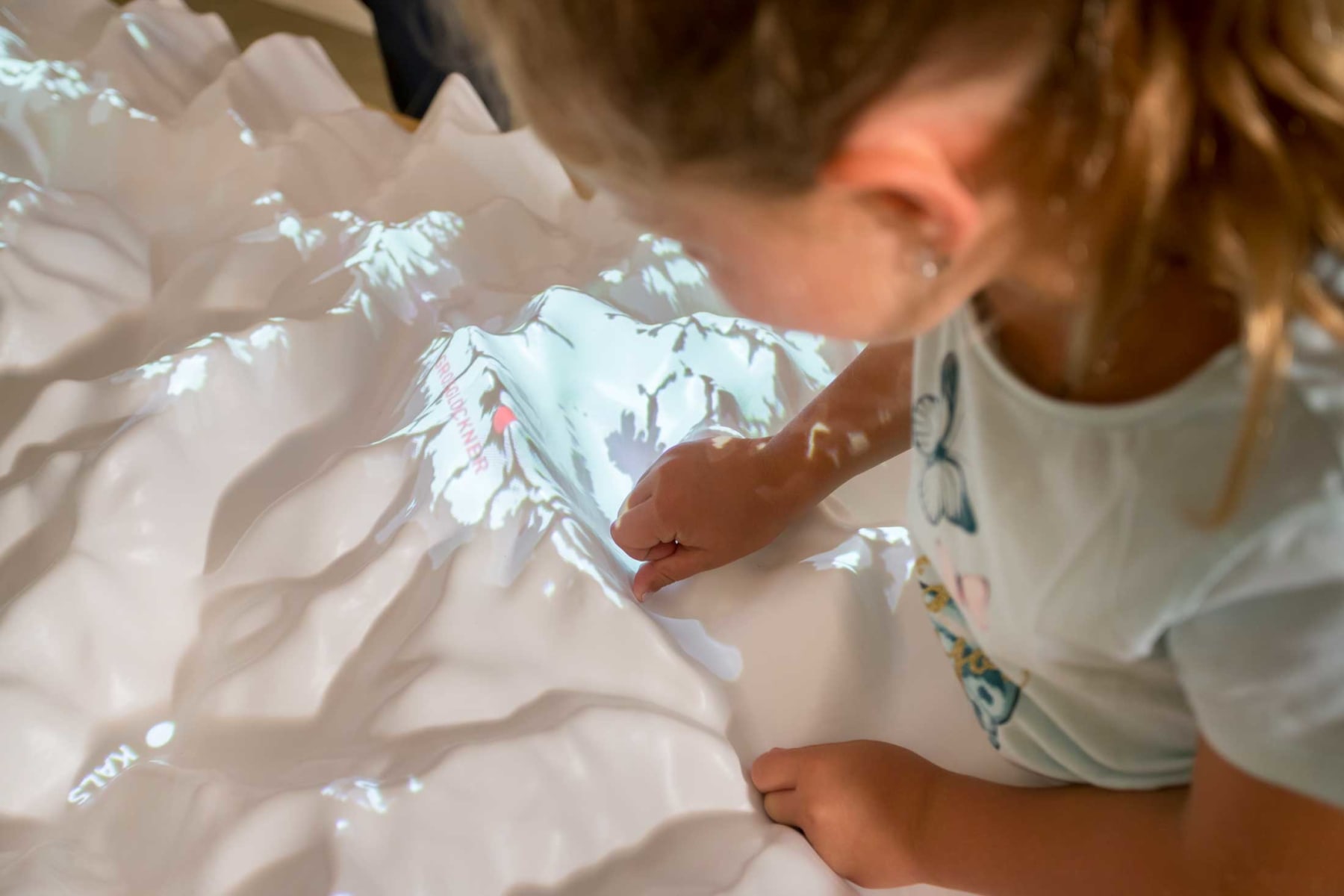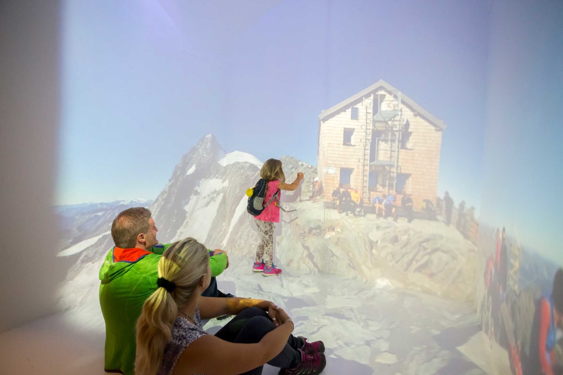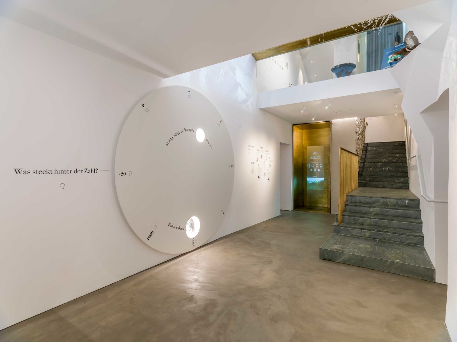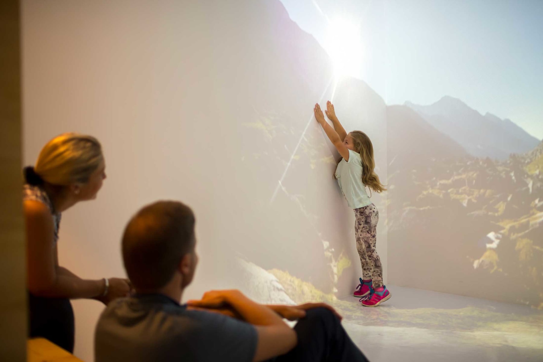 Den größten Nationalpark Österreichs in einem Keller und einem Teil des Erdgeschosses zu präsentieren – dies ist die Anforderung an die Neugestaltung der Dauerausstellung im Nationalparkhaus Hohe Tauern in Matrei i.O. Die ersten Überlegungen ergaben, dass es unmöglich ist ein so wichtiges Schutzgebiet auf solch „kleinem“ Raum umfassend zu präsentieren. Daher entscheiden wir uns aus der Ferne einen Blick in diesen zu ermöglichen und Sehnsucht zu wecken. Um ein angenehmes Ambiente zu schaffen, wird das alte, dunkle Erscheinungsbild der alten Ausstellung in ein angenehmes, helles verändert. Weiters brechen wir einen Teil der Decke zwischen EG und UG durch, um einen Luftraum zu schaffen. Die Wände sind bewusst weiß und in der Grafik schlicht gehalten, da die Einblicke in den Park dadurch umso mehr an Stärke gewinnen. Die gesamten Teilbereiche der Ausstellung befassen sich stets mit den 6 Erlebnisräumen: Gipfel, Fels & Eis, Bäche & Seen, Alpine Rasen, Almen und Bergwald. In den verschiedenen Stationen werden die Inhalte aus verschiedenen Blickwinkeln und mit verschiedenen Mitteln betrachtet. Mit modernster Technik wie VR Brillen, Hologrammprojektionen und direkten Projektionen werden Illusionen geschaffen.