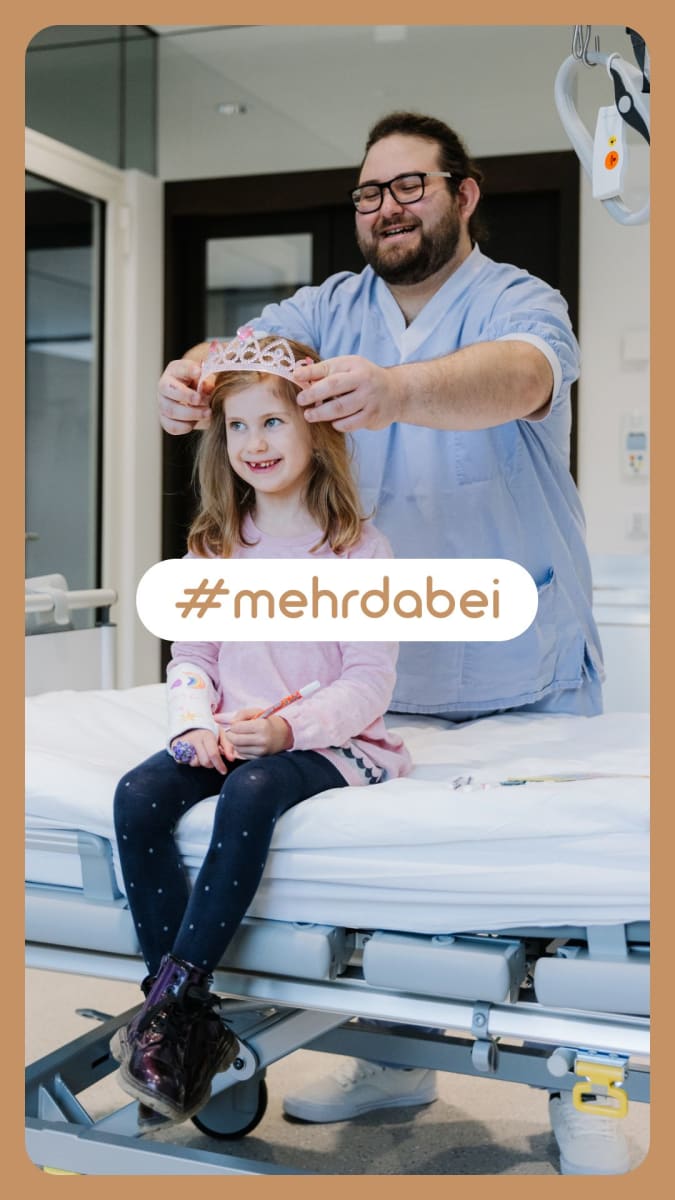 Are you a mentor, hairdresser, technician, teacher, entertainer, listener, soulmate, comedian, clown, and chef? And all at the same time? Then you probably work in the caregiving sector. As a caregiver, you have more than just a job – you have a calling that goes far beyond nursing and caregiving tasks. With the social media campaign #mehrdabei, we showcase what lies behind the nursing profession and, above all, how life-changing the way these tasks are performed can be for those in need of care. Through short video campaigns, we put caregivers in the spotlight and demonstrate the versatility, emotional depth, challenges, and yet, the immense value of this profession. Beyond the marketing campaign, we have the privilege to shape the entire wayfinding system in the new Campus for Healthcare Professions, creating an exceptional atmosphere for the students.