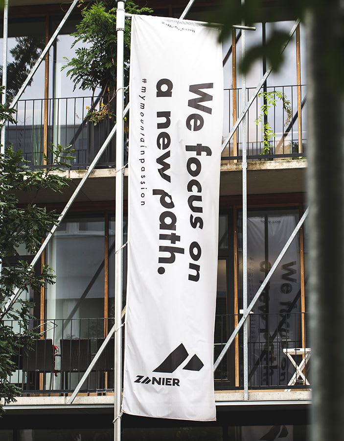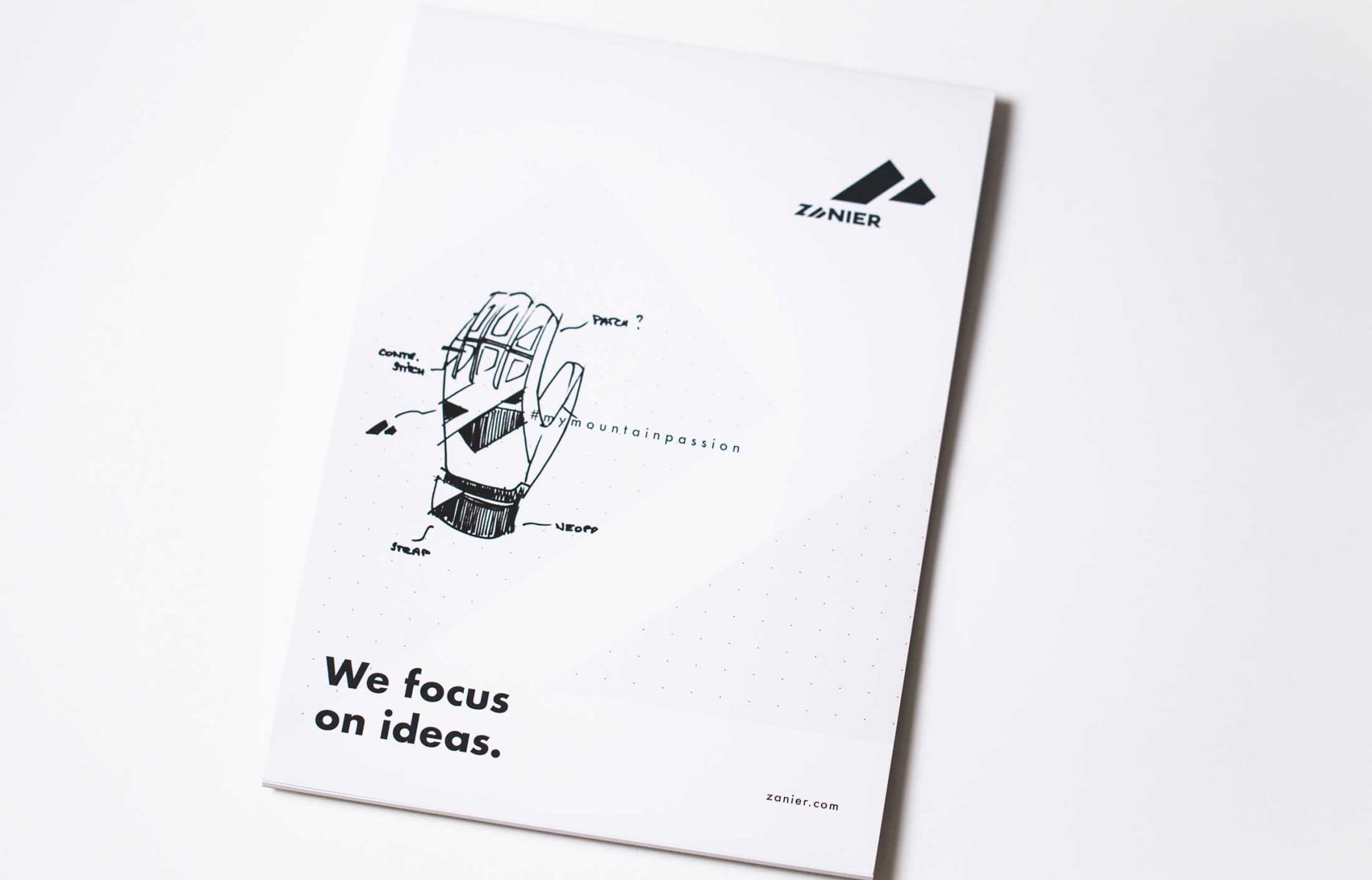 The demand for innovation and design at Zanier is as boundless as the passion for mountain sports. They continue to rely on the best materials, excellent craftsmanship, and exception- al design, just as they have always done. Standing still is not an option for Zanier, and that should be reflected in the brand. Our mission is to bring this passion for sports, innovation, and design to the forefront, presenting the brand with a completely fresh and reimagined design. Clear and powerful lines combined with emotion and functionality. This is not only represented in the corporate identity but also in the product design. Zanier gives us the opportunity to not only overhaul the corporate design but also reconsider the design of the products, resulting in an unmatched harmony between the brand and its products. Radi- cal elements, an absolute reduction to black and white, the unfiltered portrayal of rugged nature against all tourist conventions, and the 45° line representing 100% steepness have shaped the new appearance.
